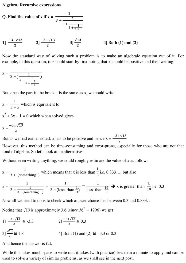 I am asking from the algebraic perspective if x= 1/(3+x) then id x is negative the expression still holds.