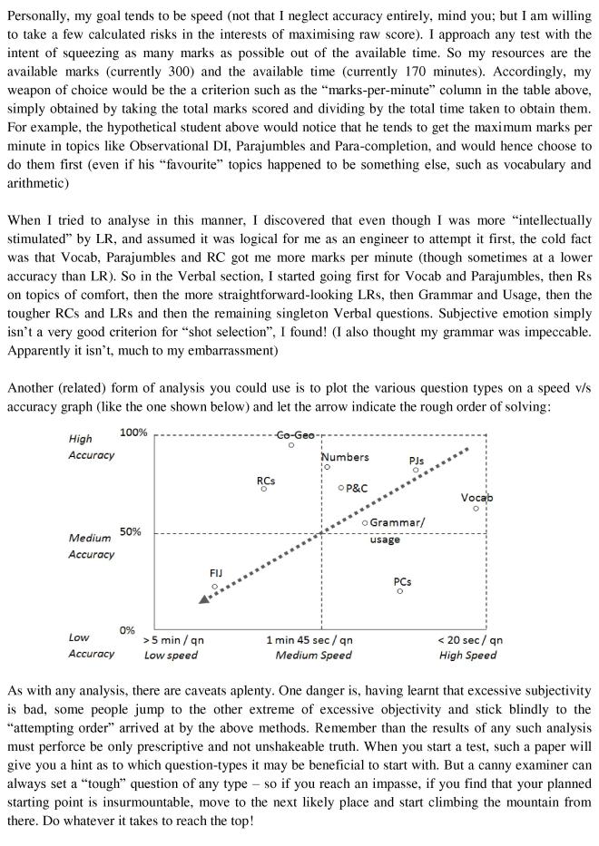 If you go there expecting easy QA, and it turns out tough, then you might panic and end up missing the easy LRs that accompany it. Or the easy RCs. As happened on 16th, with those poor souls who had pre-decided “I will do all the LRs and not look at the RC” and who, even now, are probably regretting their rigidity. Have a plan by all means, but be prepared to change it at a moment’s notice if necessary. Flexibility might be crucial to survival. As I am fond of quoting “no battle plan survives the moment of first contact with the enemy”